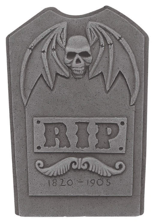 Der Grabstein RIP mit Totenschädel ist aus Styropor hergestellt und grau meliert bemalt. Der künstliche Grabstein zeigt einen Schädel mit Dämonenflügeln, die Buchstaben „RIP“ („Rest in Peace“), ein weiteres Flügelpaar sowie die Jahreszahlen „1820-1905“. Passende Halloween Deko Artikel für deinen Halloween Friedhof sind Halloween Deko Moos 50 g und Künstliches Spinnennetz mit 12 Spinnen.